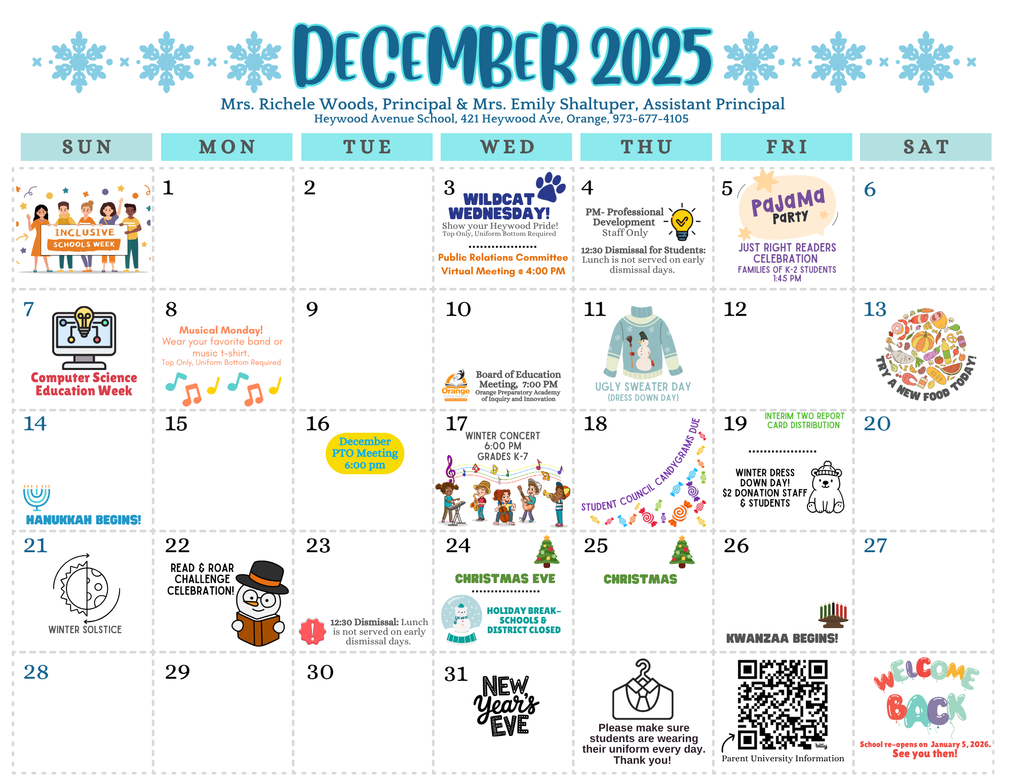 Heywood Avenue School in Orange, New Jersey is a public Pre-K through 7th grade school within the Orange Board of Education. The school emphasizes academic rigor, STEAM readiness, and holistic development in a safe, caring environment. With small class sizes, a diverse student body, and strong family engagement, Heywood Avenue School offers programs in core academics, art, music, world languages, physical education, and special education. Students are celebrated for academic achievement, attendance, and leadership through awards and activities, while community involvement is fostered through events, Student Council, and PTA initiatives.